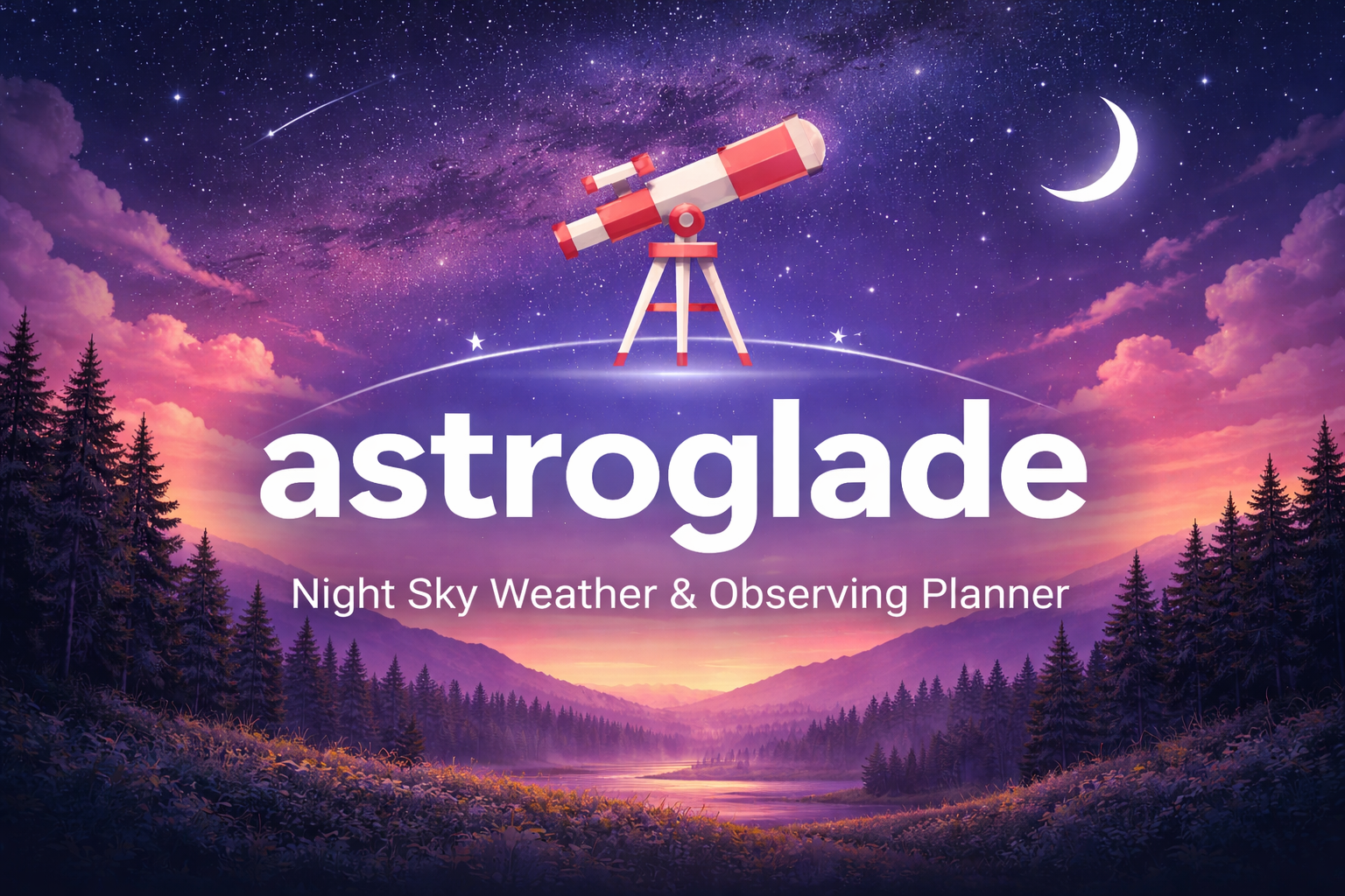 Open AstroGlade on your phone or desktop — same app, your places, your skies.